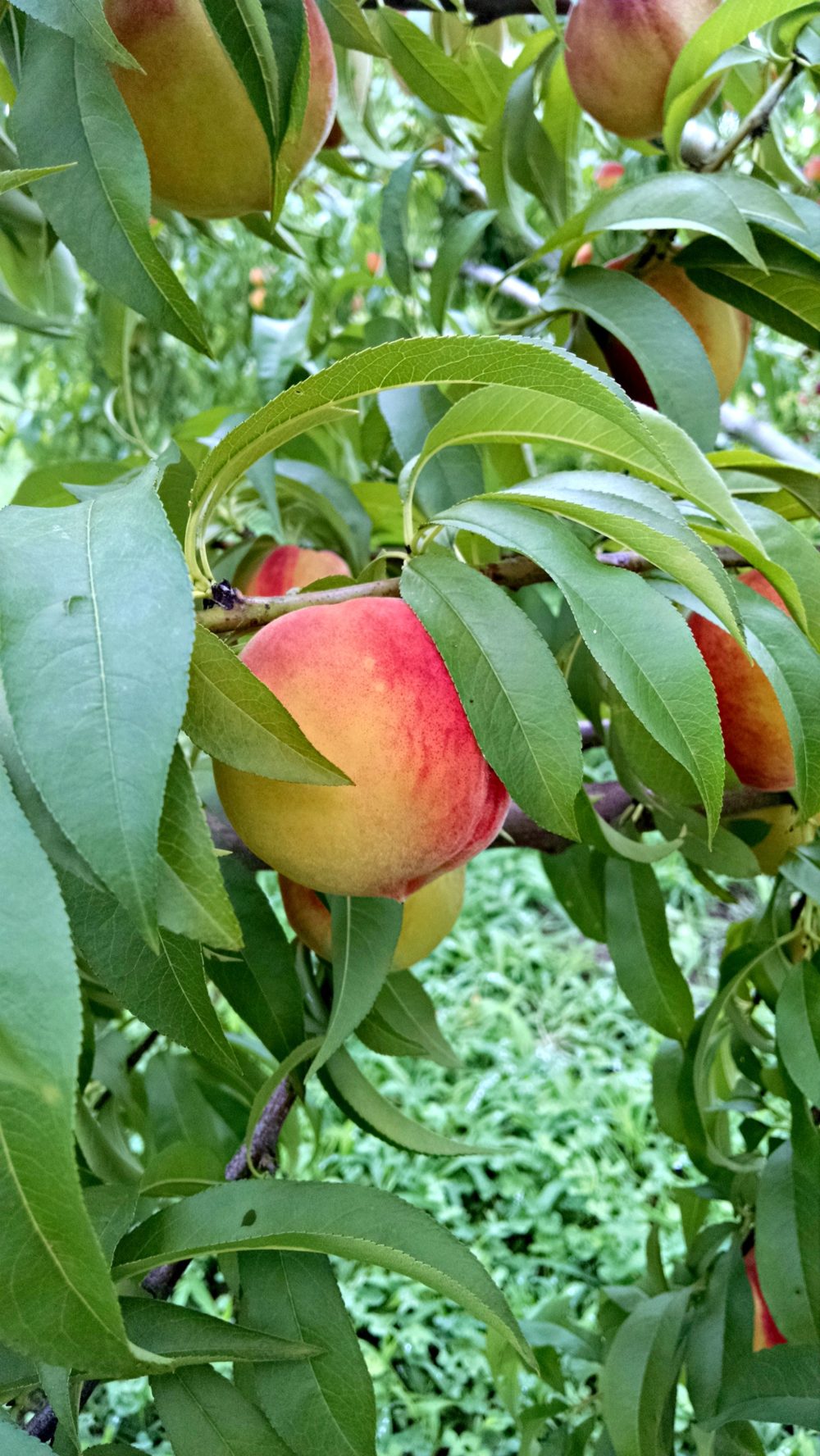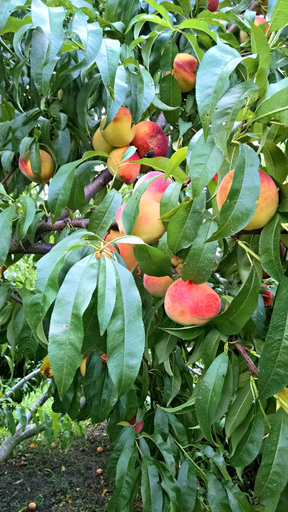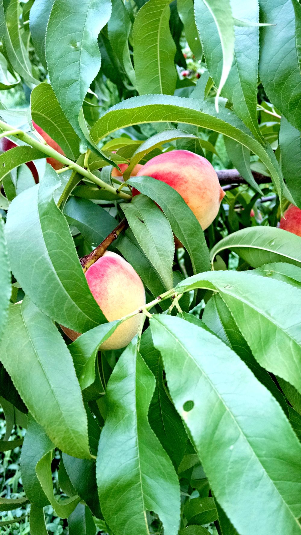I was surprised to see that they grew almost like apples, hanging from long branches at the perfect height for picking. The color of these peaches was amazing, and they were so fresh that as I walked among the rows of peach trees I saw people pick them right of the tree and take a bite, with sweet peach juice dribbling down their chin.